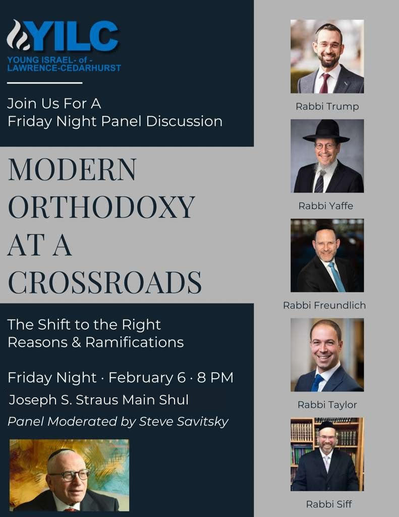 Join us for a Friday night panel discussion: Modern Orthodoxy at a Crossroads – The Shift to the Right Reasons & Ramifications.